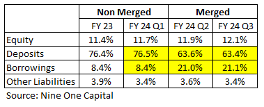 The reason for this reduced NIM is the drastic change in the composition on the liabilities side of the balance sheet. Here is how it has changed post the merger: